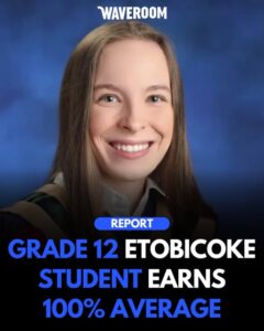 She is the only Etobicoke student to earn 100 per cent in a Toronto Catholic District School Board (TCDSB), list of their top 16 students with the highest averages.