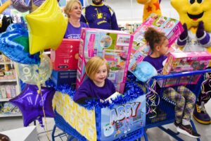 Abby was able to fill carts with as many toys as possible in just three minutes. The Dash is designed to provide seriously ill children with joyful memories away from hospitals, treatments, and medical worries.