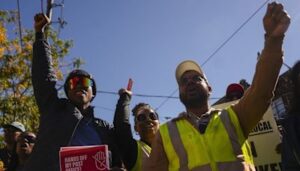 Abby, 7 (left) pushed by her mom, with some of the many toys she managed to grab at Toys “R” Us in three minutes.