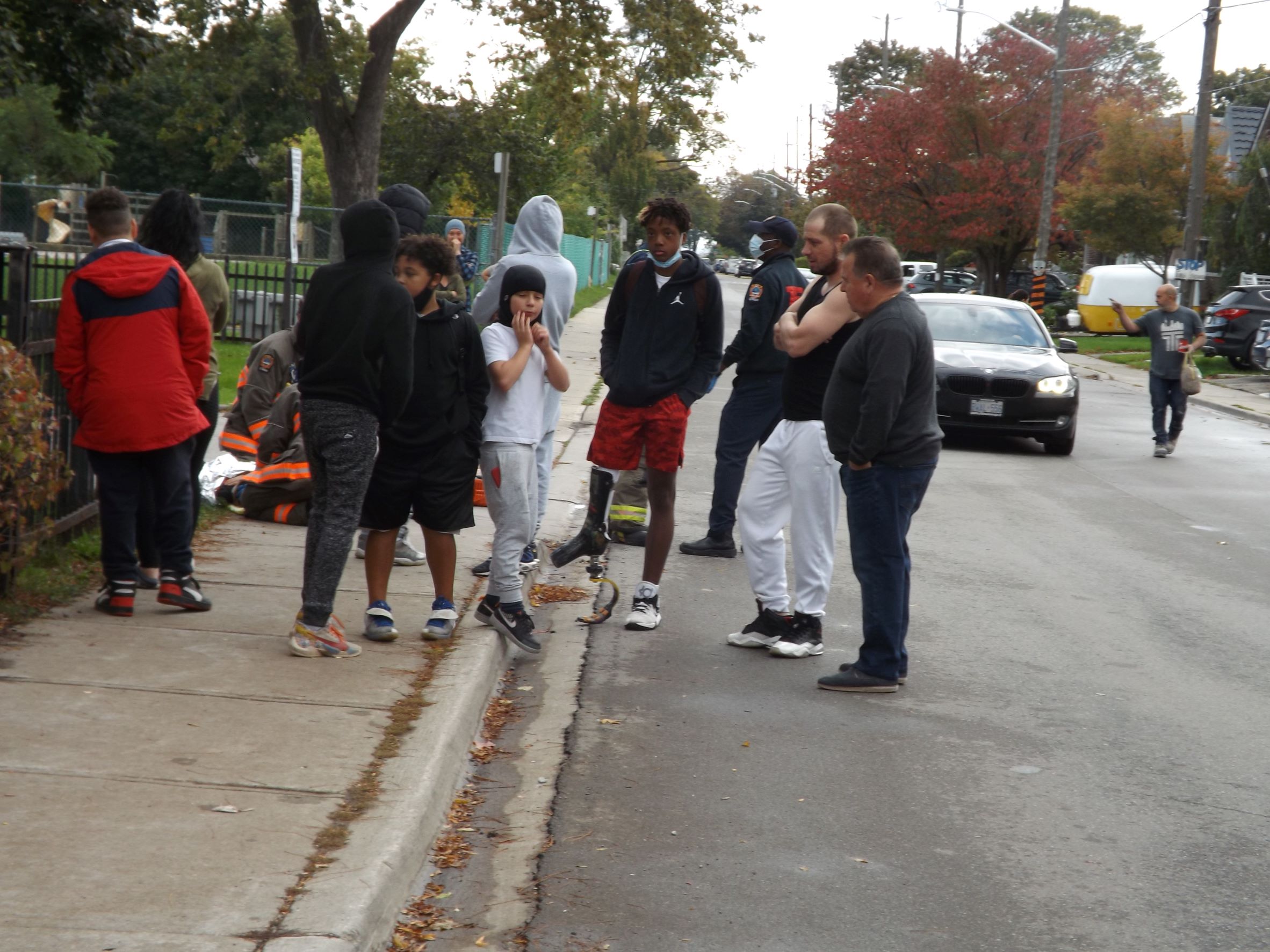 Witnesses at the scene said the child was taken for checks to the Hospital for Sick Children. It appeared the boy was hit in the head area by the truck near Seventh Street Junior School.