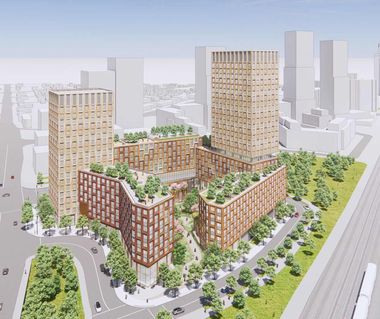 The site will deliver 725 residential homes, including 30 per cent affordable rental homes, 218 units, and 507 market rental homes. Rents for affordable homes will