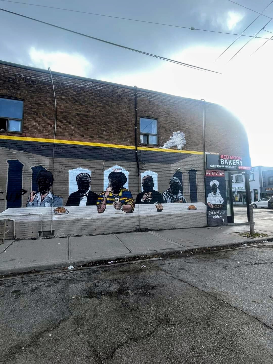 The mural that was painted at the side of Red Moon Bakery, at 2864 Lake Shore Blvd. W., has been since somewhat been cleaned up but parts of the graffiti still remain.
