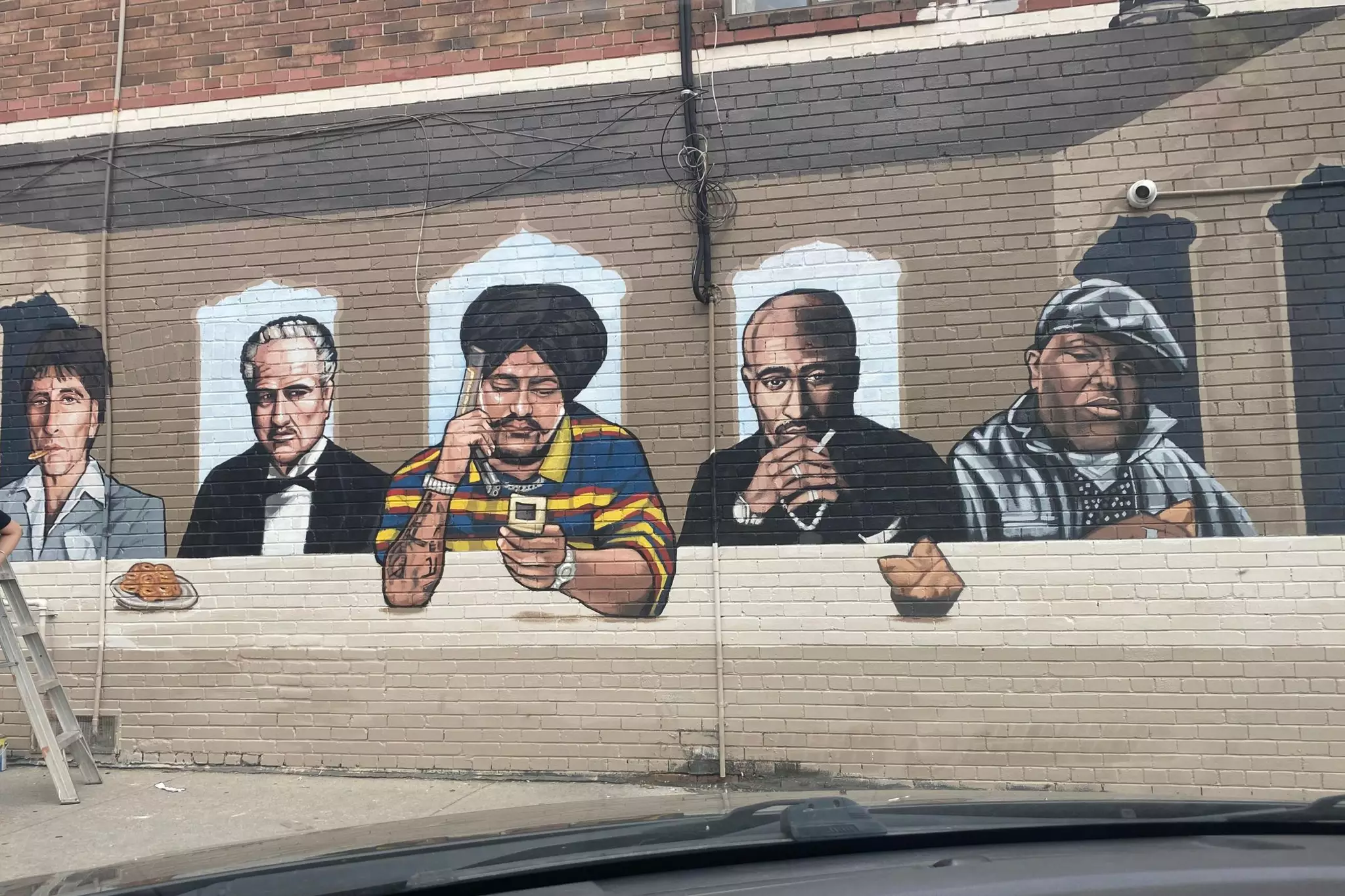 The drawing featured characters depicting Indian rapper Sidhu Moose Wala as the centrepiece, flanked by U.S. rappers Tupac and Biggie Smalls as well as fictional characters from Scarface and Marlon Brando as Vito Corleone from The Godfather.