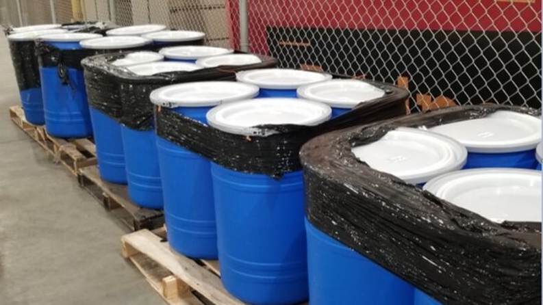 Police released photos showing large, blue containers the silver was shipped in as well as the shipping container the barrels were transported in.