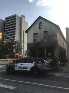 scorched from intense fire and smoke damage and