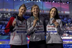 The Etobian was the first swimmer in history to hold both the 400-metre and 400 freestyle world records at the same time, which McIntosh did for almost four months until Australia’s Ariarne Titmus reclaimed the freestyle record in Fukuoka last July.