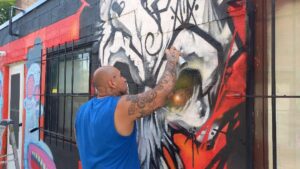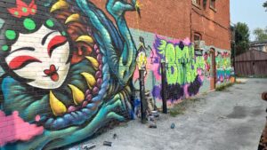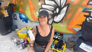 Her works appear in a number of venues in the city, like Coronation and Woodbine Parks. She recently returned from a female graffiti artists convention in Mexico City.