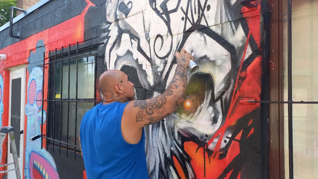 He and his group of painters have painted a number of large murals in the community.
