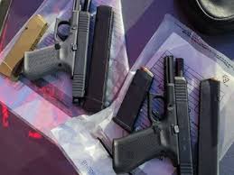 Officers seized three semi-automatic handguns, a long gun and a large quantity of firearm ammunition.