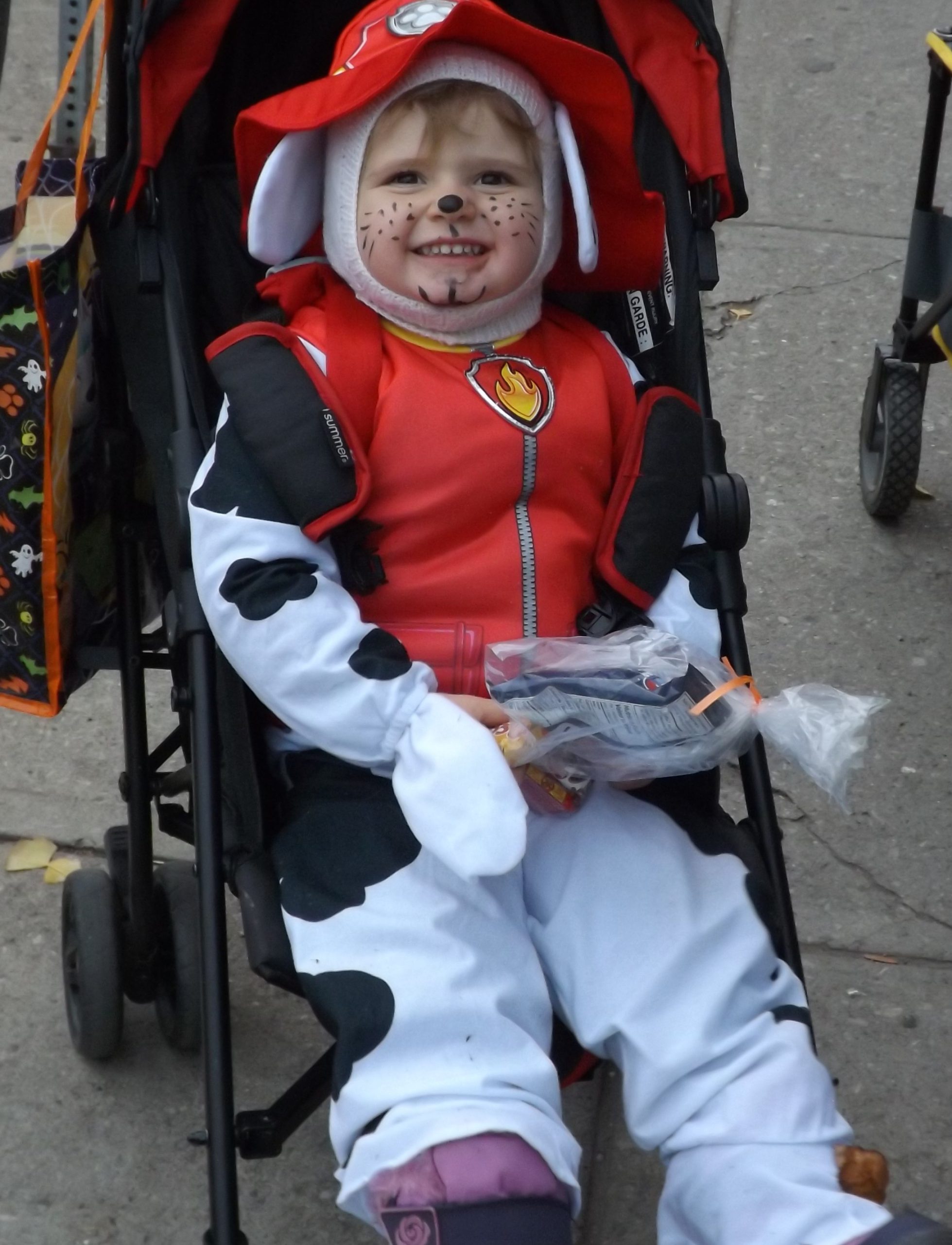 Dozens of area smiling costumed children with smiling faces were treated with bags of candy to celebrate Halloween this year.