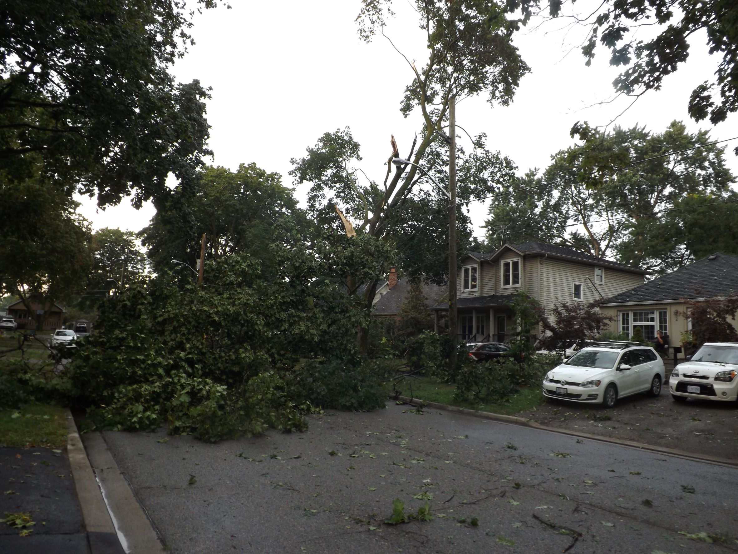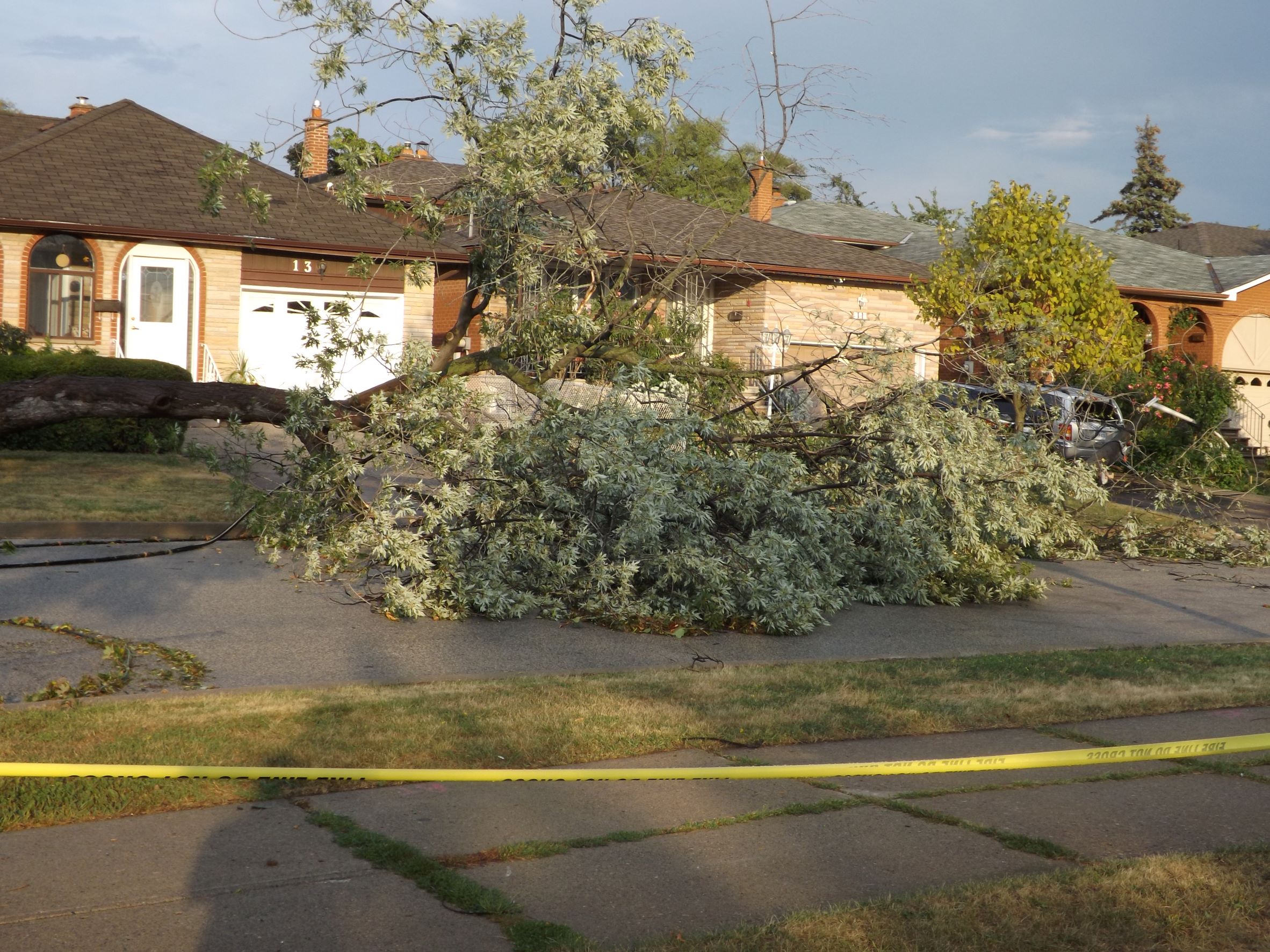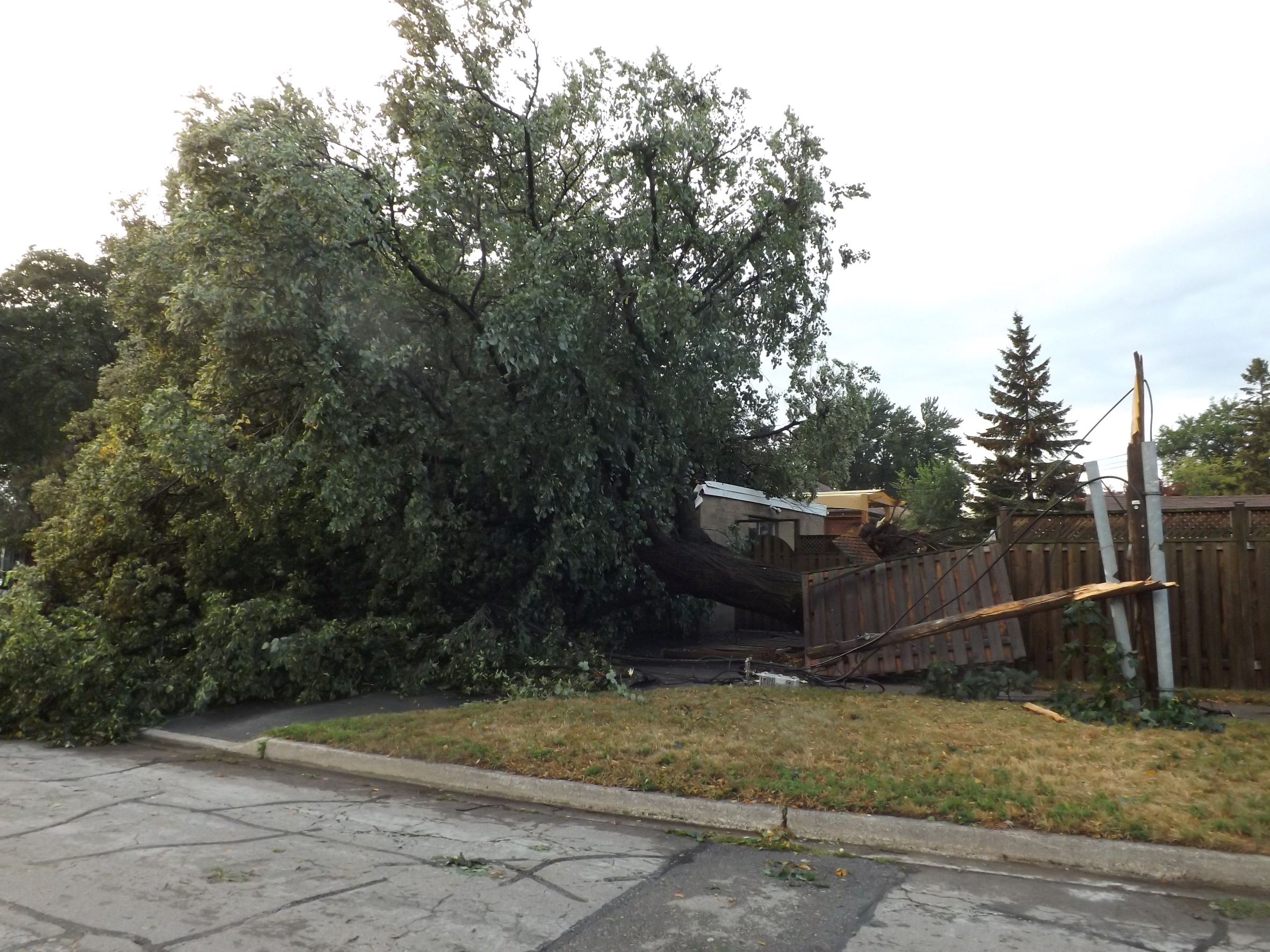 Dozens of mature trees were snapped by the howling windstorm leaving as many as 1,000 Toronto Hydro customers without power.
