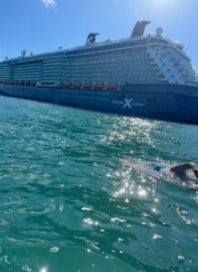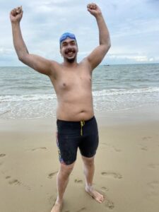In preparation for the swim, he spent countless hours in the pool, in the lake, and in the ocean. “I swam in the cold water in winter to get used to frigid temperatures. I also had to figure out how to eat while swimming.”