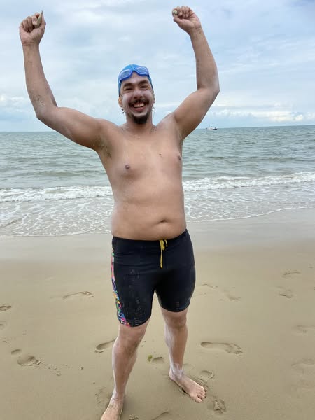 He trained for three years, by even swimming in the winter at Marie Curtis Park, in preparation for the challenge.