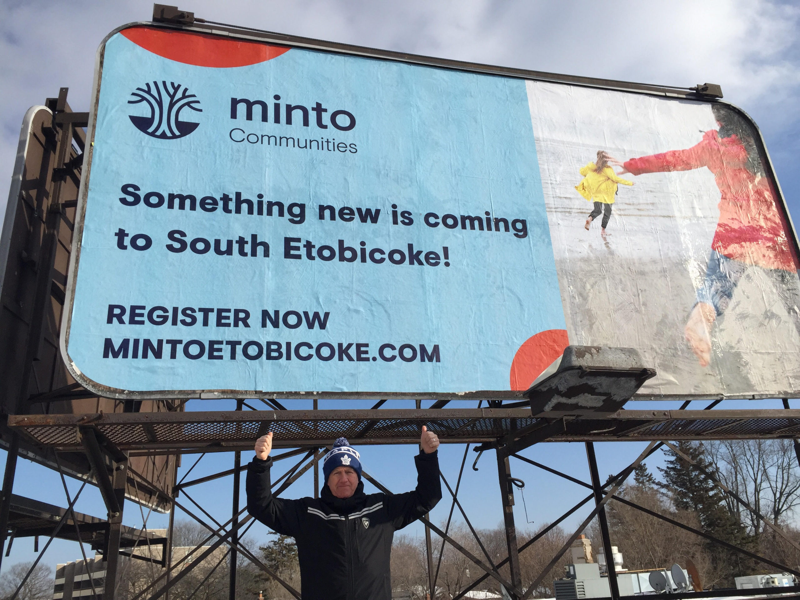 “I would like to announce that the home developer Minto has signed a contract with my new, small billboard business to put their name up there,” Morren said in a release. “Minto deserves a little credit for supporting my little, one person, sole proprietorship, without any questions asked, that with a three year contract.”