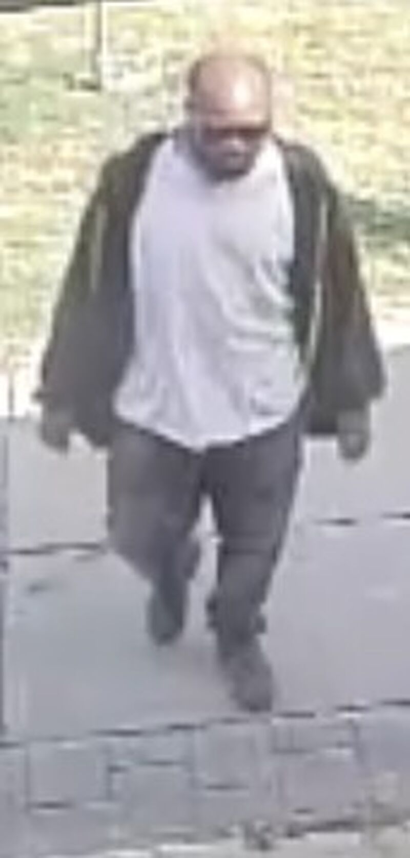 The suspect took off and is described as in his mid-30s, medium build, bald, closely shaved beard, wearing dark glasses, dark hooded sweatshirt, dark jeans, grey or white T-shirt and was carrying a green grocery bag.