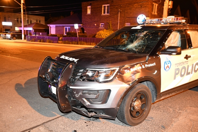 “The police cruiser collided with the right side of the motorcycle and the sound of the impact could be heard,” according to the SIU report. “Complainant #1 was seen rolling over the top of the hood of the police cruiser and smashing into the windshield. He was then thrown onto the street.”