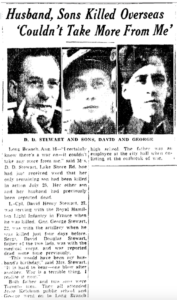 The community stood firm and grieved with the Stewart family when Dudley and sons, David and George, after being killed abroad five days after their father died in WWII.