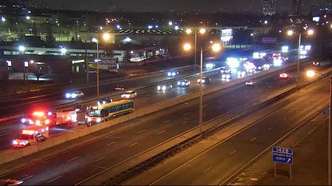 Police and emergency crews were called on January 12 to the westbound lanes of the highway near Islington Avenue, just before 9 p.m., after reports of a multi-vehicle collision involving a GO Transit bus.