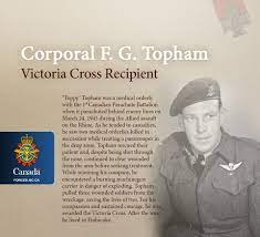 Topham’s heroism was celebrated with a parade and civic reception in Toronto on August 8, 1945; one hundred members of the 1st Canadian Parachute Battalion served as a guard of honour.