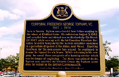 A plaque of Etobicoke war hero and Victoria Cross recipient George Topham stood for many years outside the former Etobicoke Civic Centre.