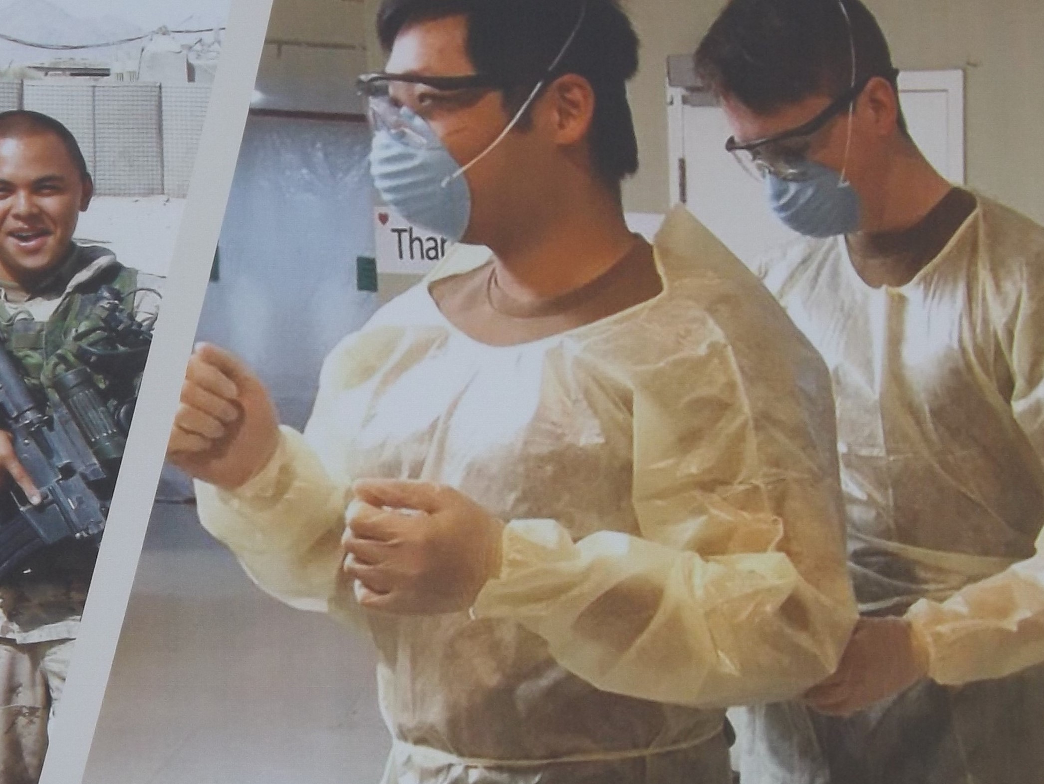 MASKED HEALTH CARE workers were among the many people featured in mural honouring Toronto Scottish Regiment. Photo by Tom Godfrey.