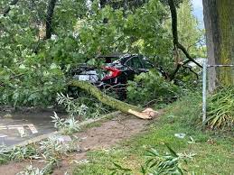 Tree falls on car in Marie Curtis Park July 31, 2023 by SouthEtobicokeNews No one was hurt during a storm last week when a large mature tree fell on a car parked at Marie Curtis Park. Photo courtesy of Lorenda Reddekopp of CBC News.