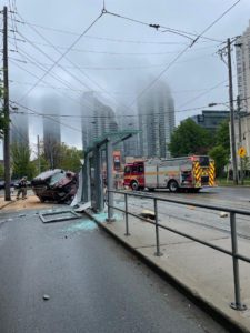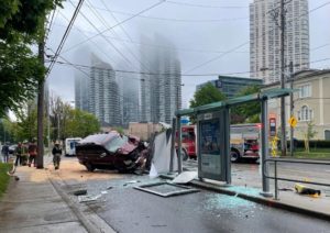 Witnesses said the vehicle appeared to be speeding as it hit a barrier in front of a TTC pedestrian island for a streetcar shelter.